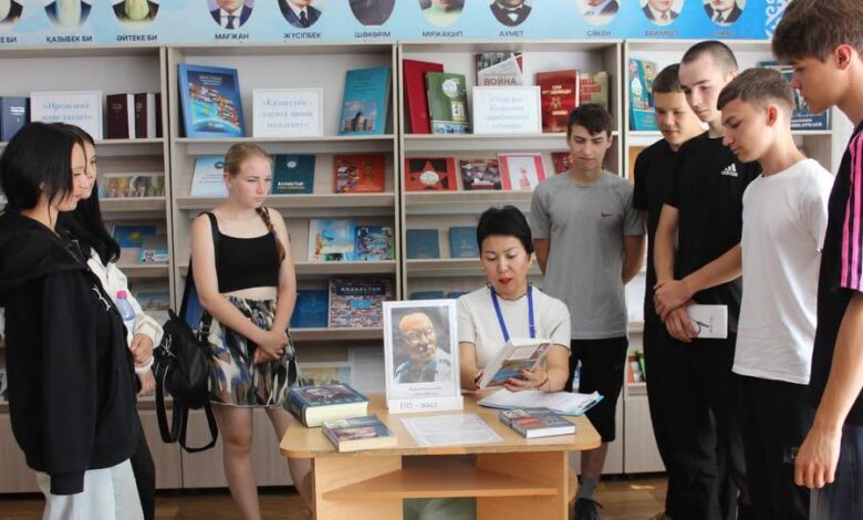 Библиотекарь рассказала о жизни и творчестве казахского поэта , Народного писателя Жубана Молдагалиева .